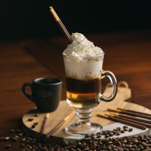 Se sirve en una taza precalentada, se mezcla el café con Baileys y se corona con nata montada y chocolate. El resultado: una bebida cremosa, dulce y reconfortante, con un toque licoroso.